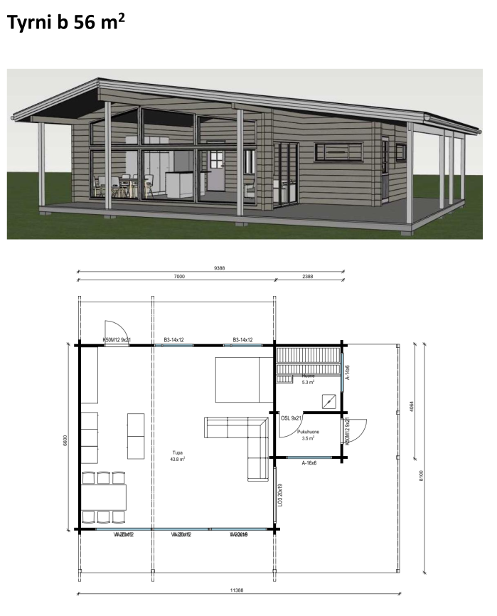 Toimitus sisältää kehikoihin karapuut, tapit ja eristeet. Kokonaistoimituksissa hinnat neuvotellaan tapauskohtaisesti.